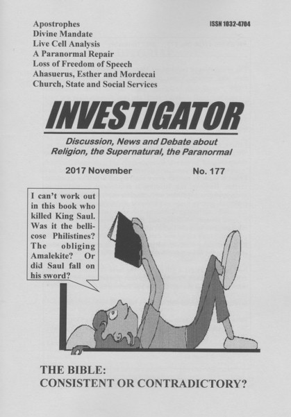 Straughen, K. Two Examples of the Fallacy of Biblical Inerrancy, Investigator 175, July 2017, 28-29