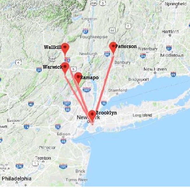 Warwick in New York State, 47 miles "as the crow flies" NW of their