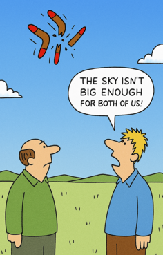 Modern boomerangs have moved beyond the classic two-arm design. Competitors now use three- and four-armed boomerangs, and even 3D-printed models, like those debuted by the French team in 2018. The sport continues to evolve with new materials, aerodynamic designs, and training techniques, making it both a science and an art. Boomerang throwing today is a global sport that blends tradition, physics, and international friendship. And yes, it still has that magical moment when the boomerang arcs through the sky and returns to the thrower's hand. Reference: Copilot. AI-generated image of boomerang throwing. 2025. Boomerang-throwing Competitions. 2025. Copilot. https://copilot.microsoft.com/ ————————————— |